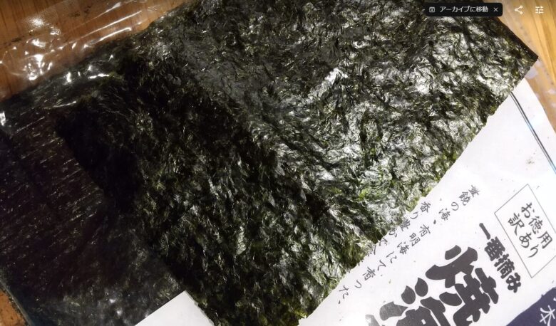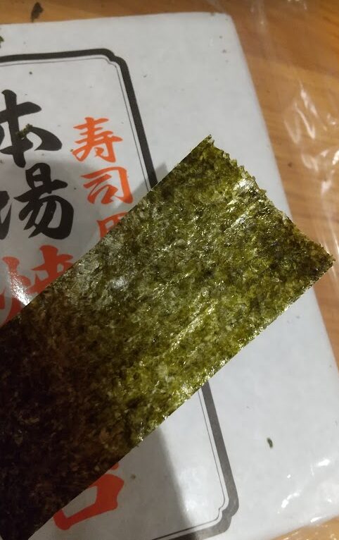 ちなみに下は、激安でネットで買った海苔。 薄っぺらくて、味もおいしくなかったです。 海苔はケチってはいけない。と思いました。