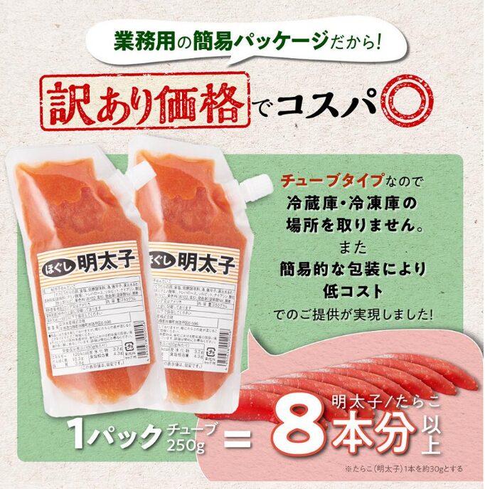 | 8 | チューブほぐし明太子 250g×2種 | ★★★★ |