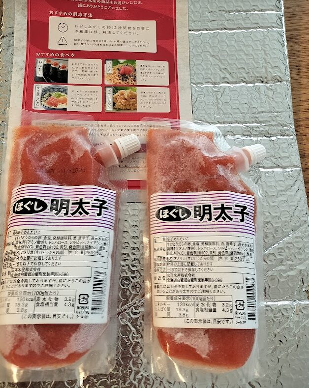 ネギ、しょうが、麺つゆで冷やしで頂きました。 すごいコシ!うまい、うますぎる!2人前でも食べれてしまいます。 2倍量の24食入りで5000円の方が断然得なので次回はこれにします。 チューブほぐし明太子 250g×2 北海道白糠町 4,000円