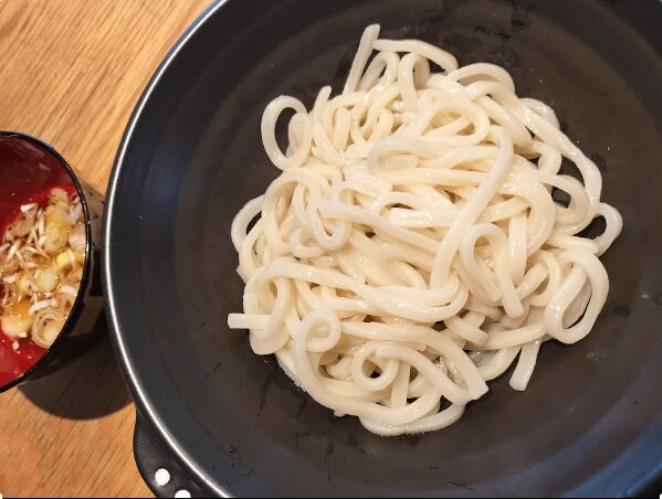 最初はやっぱり、冷やしで頂きます。 茹で時間が12分から14分と長めなのでちょっと時間かかっちゃいますね。 一袋に2人分とありますが、少なさそうなので1人1.5人前にしました👇 14分しっかり茹でてもコシがしっかり!!