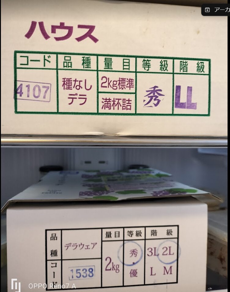 写真左は、「デラウェア」で、右が「種なしデラ」と書いてありました。