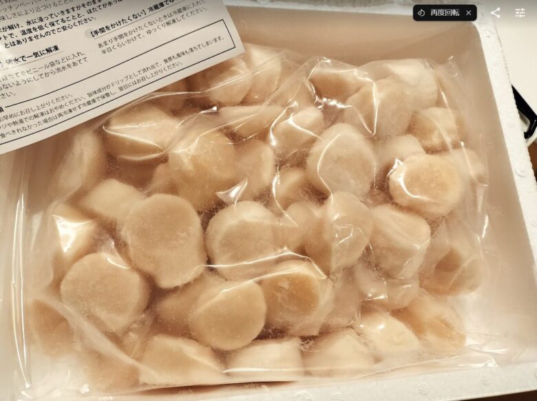 冷凍ホタテは毎年注文します。 冷凍なので使いたい時に使いたい分だけ調理できてとても使いやすいです。 調べたところ、こちらが1㎏では一番お得だったため、注文してみました。✅小中混合11000円 ✅大中混合19000円