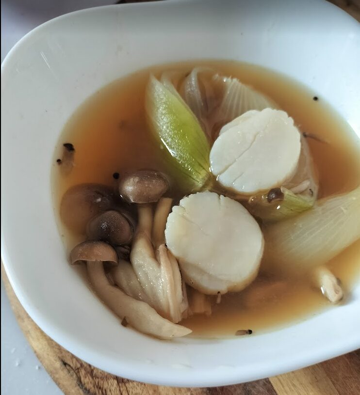 凍っていてバラバラひとつずつ取り出せるので本当に便利です。 こちらは凍ったままスープにドボンと入れてみました。 ただのコンソメスープがホタテの出汁で激うまになりました。