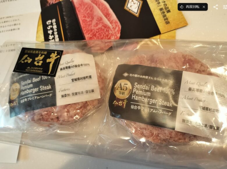 焼肉と、牛丼で頂きました。結論は、牛丼やすき焼きなどの煮込み系のお料理の方がおすすめです。 焼肉にすると、赤身の多い部分はどうしても固くなってしまいました。脂が多い方が柔らかくておいしかったです。 この自治体のもう一つのメリットは、レビューを書くと、2500円相当分の仙台牛のハンバーグがもれなく頂ける事。