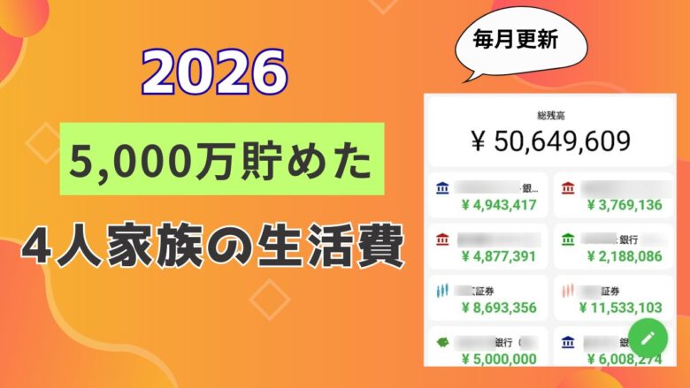 一戸建て購入後の残高800万円から約11年で、2026年1月に、貯蓄額が5,000万達成しました。