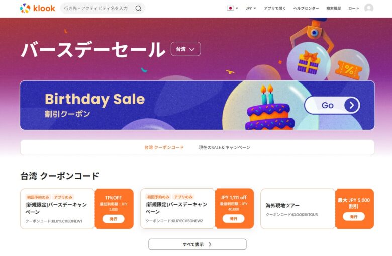 Klookは公式サイトやメルマガで頻繁にクーポンを配布しています。