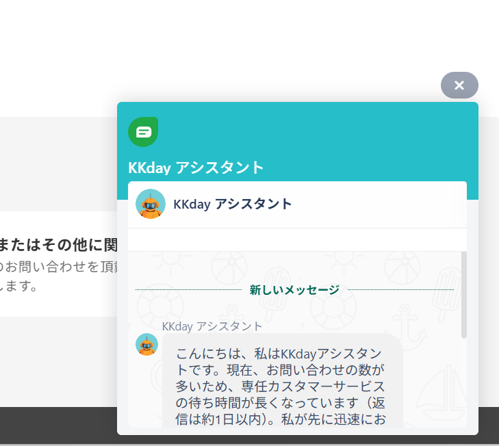 ただし、Klookの様に即回答がもらえるわけでは無く、通常数日以内にメッセージボックスに回答が届く形となります。