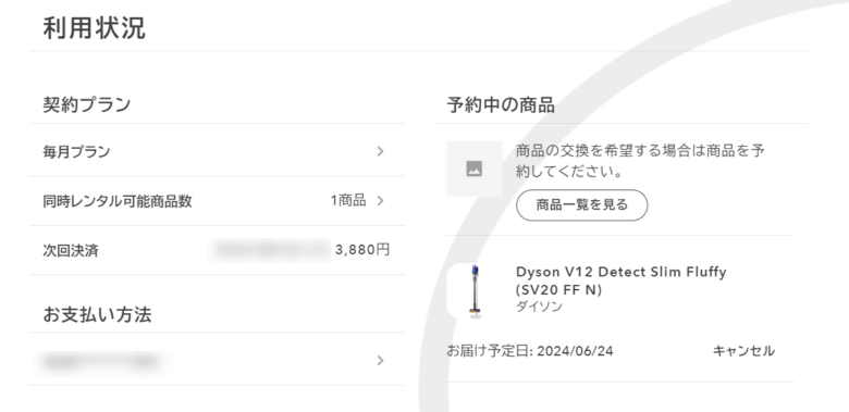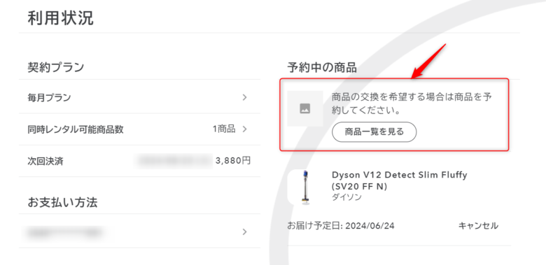 商品の返却が次回決済日をまたいでしまうと、次回分の料金が発生してしまう為、注意が必要です。