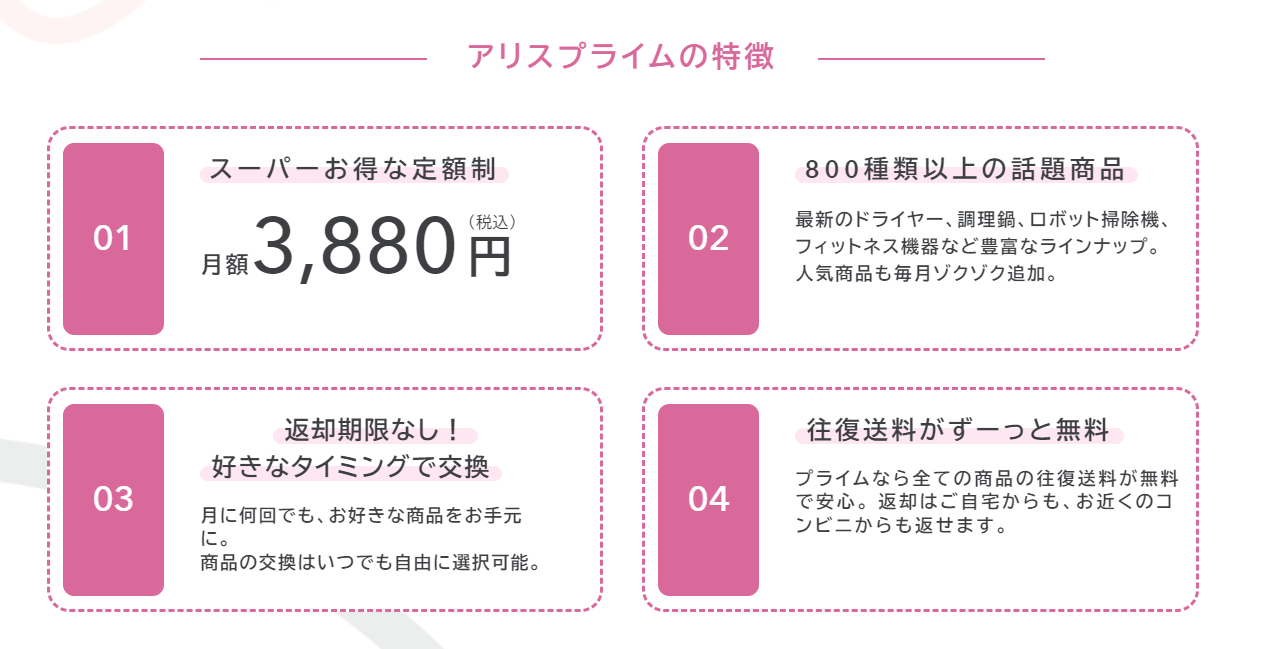 アリススタイルの定額レンタルプラン【アリスプライム】をご存じですか?