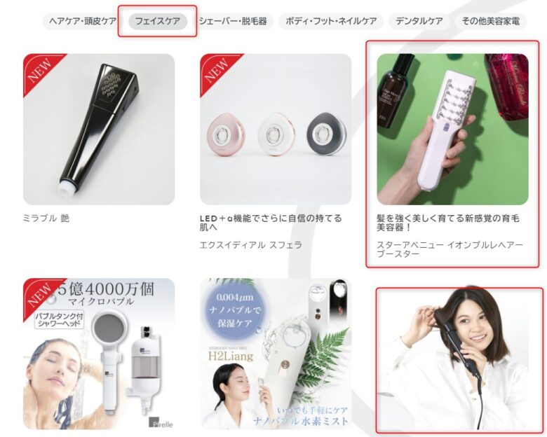 また、カテゴリー分けが適当で、フェイスケアなのに、ヘアケア用品が入っていたり👇掃除機の中に食洗器が入っていたりします。