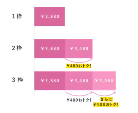 要するに、レンタル料は、1点につき3,880円で、2つ目、3つ目は割引になるという事です。