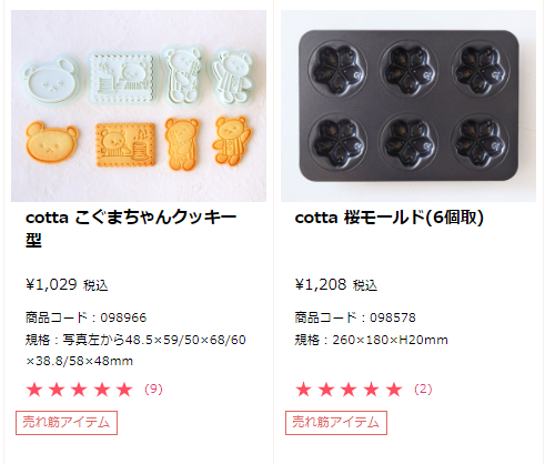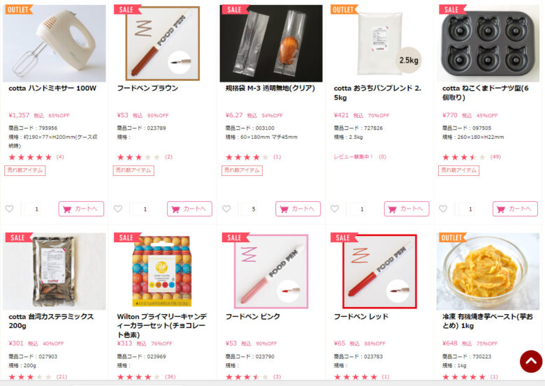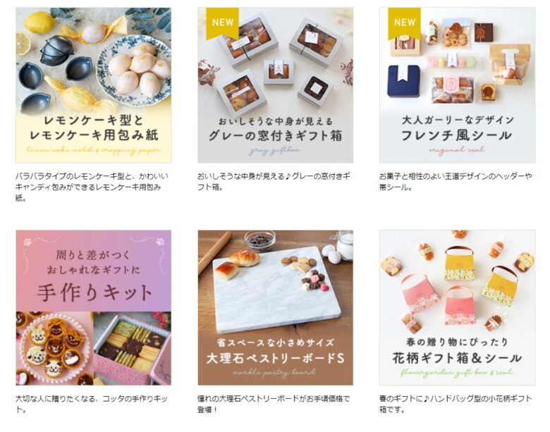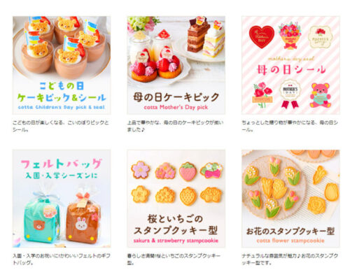 ・道具やラッピング用品が豊富にある、毎日お得セール開催している→cotta