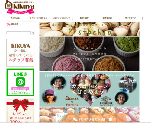 ホームメイドショップKIKUYAは、愛知県名古屋市に店舗を持つ、製菓製パンの材料や世界各国の食材を扱う専門店です。