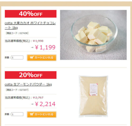お菓子・パン作りの総合サイトcottaも有名なので知っている方も多いと思いますが、富澤商店との大きな違いは、実店舗は無いことです。