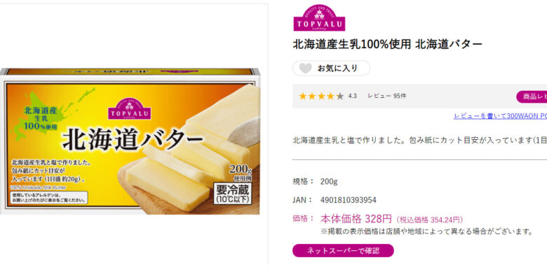 ただ、よつ葉バターだけは、圧倒的に富澤商店が安いです。