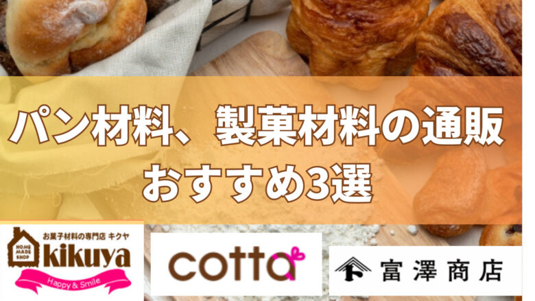 このブログでは、パン作りやお菓子作り用品を扱う定番のネット通販の、富澤商店コッタ(cotta)、また、実はあまり知られていないですが、穴場のkikuya(キクヤ)の3店を比較し、おすすめポイントを書いています。