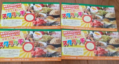 ブロンコビリーでは、毎回の会計で、人数分のスクラッチカードがもらえます。