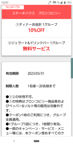 上述した様に、ブロンコビリーには、公式アプリ以外には、良いクーポンはありません。