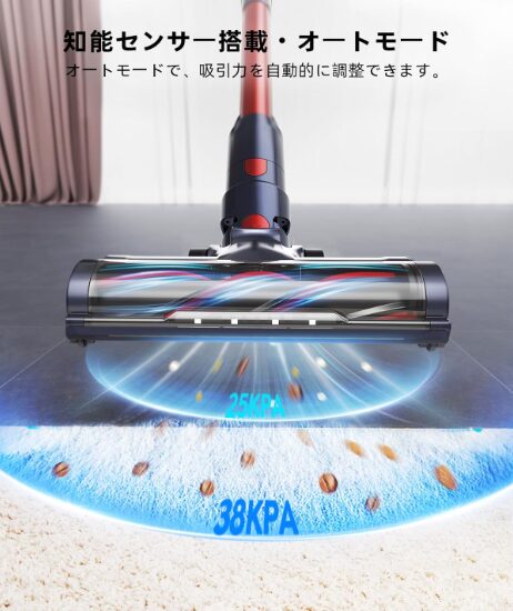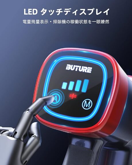 BuTureコードレス掃除機は450Wモーター搭載し、吸引力が38,000Pa以上に達します。