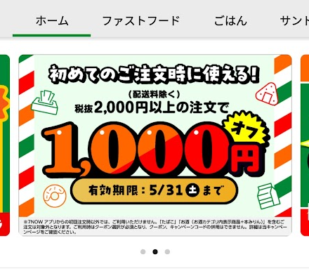 7NOWアプリでは、新規ユーザー向けに初回利用時に1,000円引きのキャンペーンを実施しています。