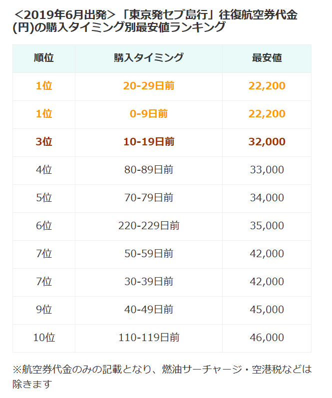 また、セブ島への航空券が安い時期、出発何日前の購入が安いか、ベストシーズン、おすすめ購入サイトなどのお得情報も書いています。