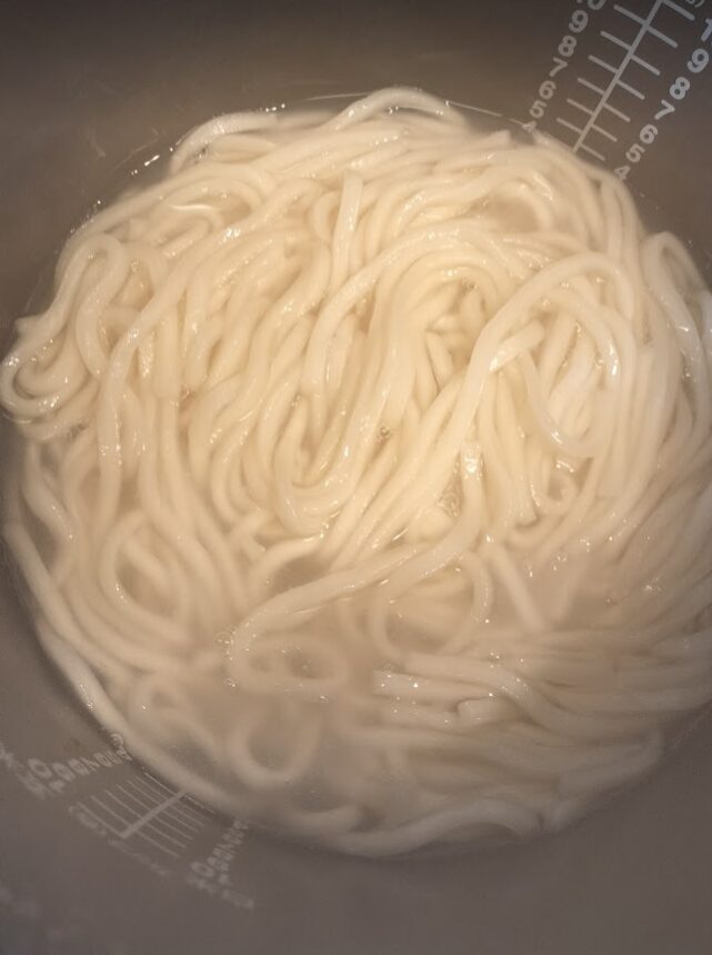 茹で時間14分の半生のうどんを、圧力モードで茹でてみました。