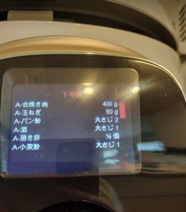 人数を選択すると、ディスプレイに人数分の材料が出ますのでいちいちスマホなどで調べなくてもいいです。