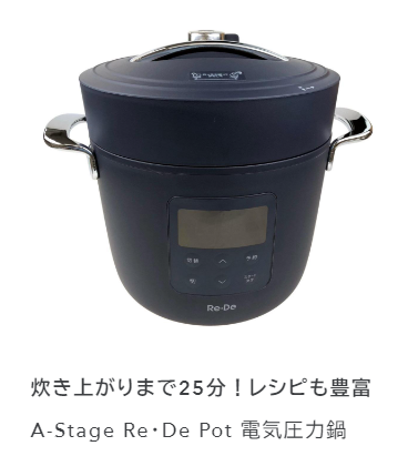 - 予約機能付きで、外出前にセットして帰宅時に出来上がりの料理を楽しめる
