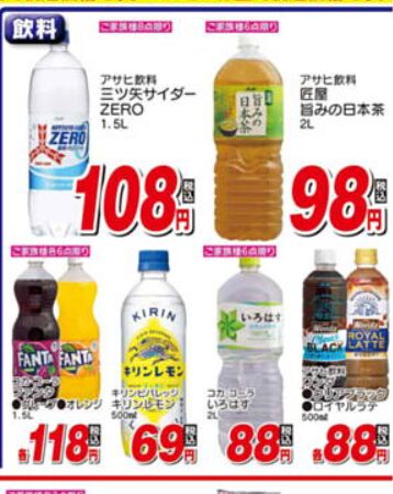 ヤマザキロイヤルブレッドや、ゴールデンカレー、2Lのメーカーのお茶などが、税込みでこの価格は破格でしょう。