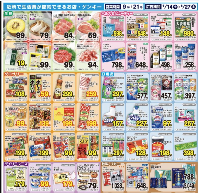 ゲンキーは生鮮食品や飲料の「一部カテゴリで爆安」という印象です。