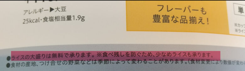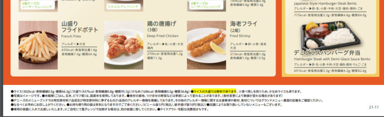 見づらいですが、ライスの大盛りは無料で承ります。と書いてあります。