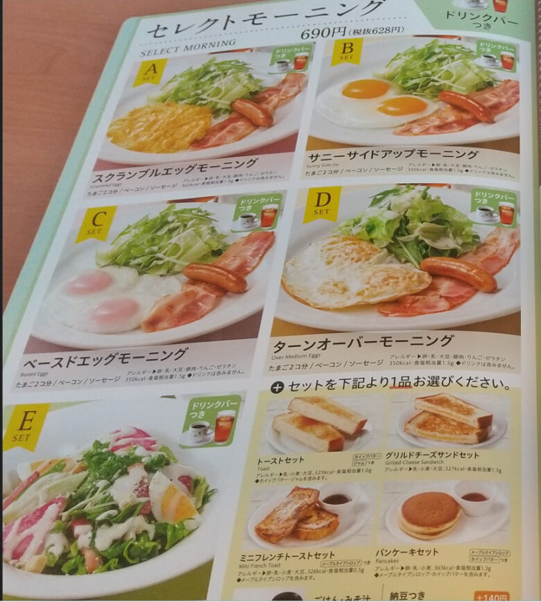 ✅セレクトモーニングのパンケーキやフレンチトースト等の単品メニューは存在しない