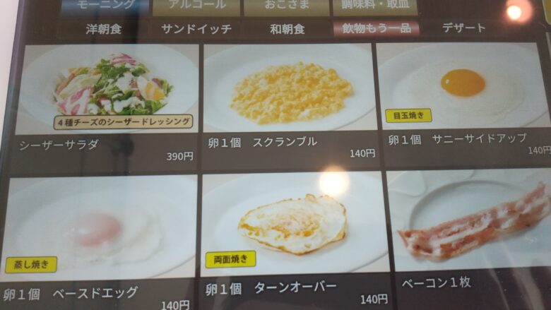 ちなみに、いずれの場合も、下記の様に卵料理などは追加で注文できます。