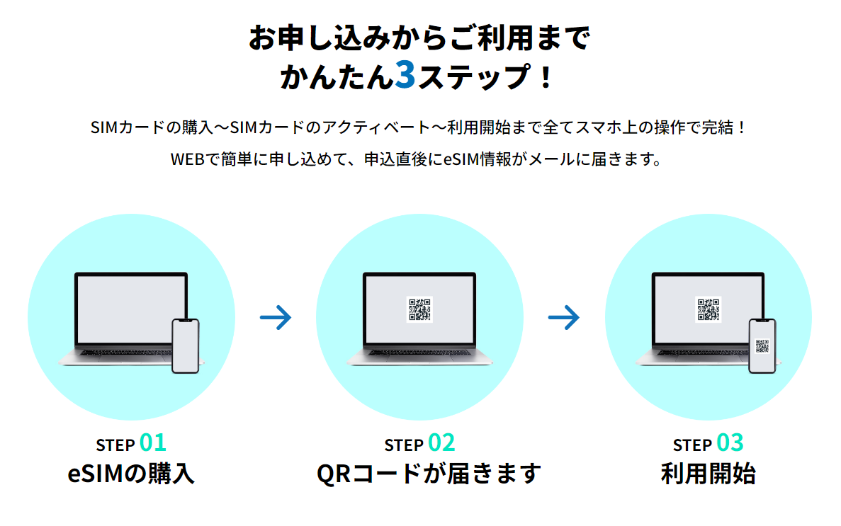 申し込みから最短1分で海外でのデータ通信が可能申し込みもとても簡単です。