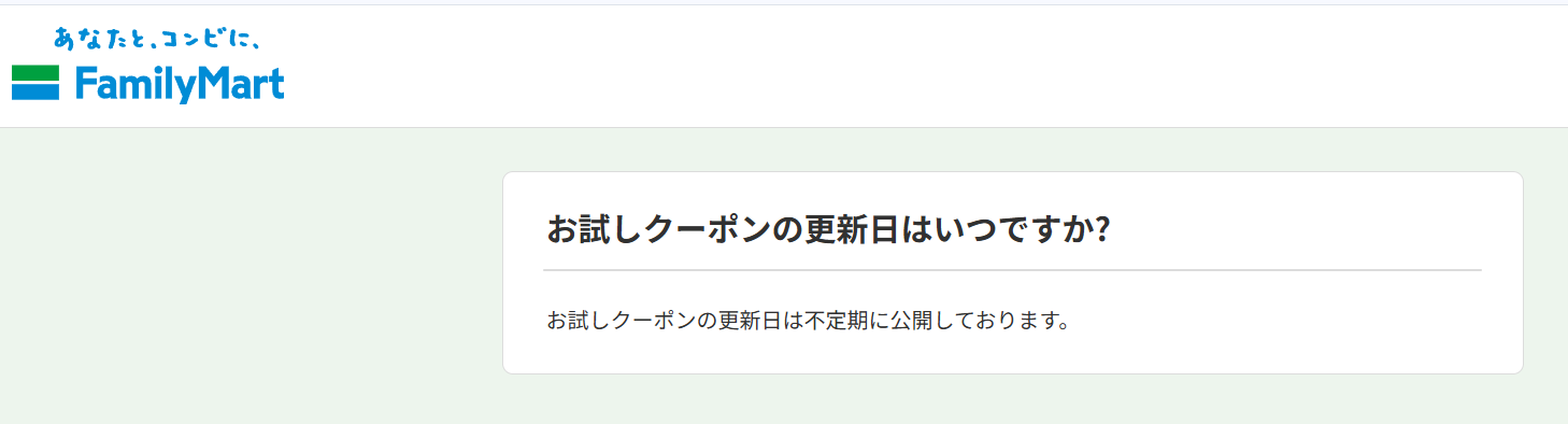 ファミペイのお試しクーポンの更新日時は、不定期。
