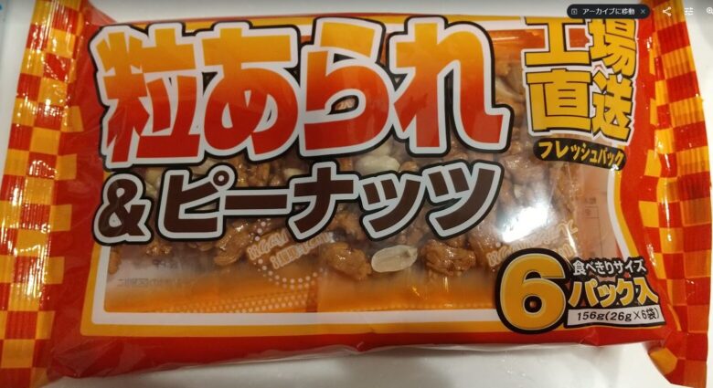 ただ、柿ピーは亀田さんの柿の種のような辛味はなく、ただのあられに近いので、どちらかというと、この粒ピーのほうがおすすめ。
