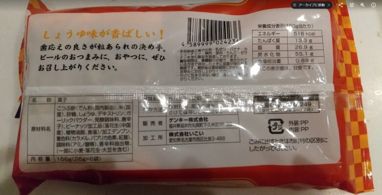 こちらもゲンキーのPBですが、柿の種バージョンもあります。