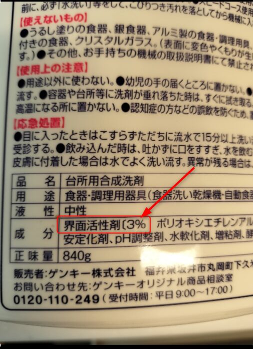 いつも使ってる花王のキュキュットは界面活性剤 15% です。