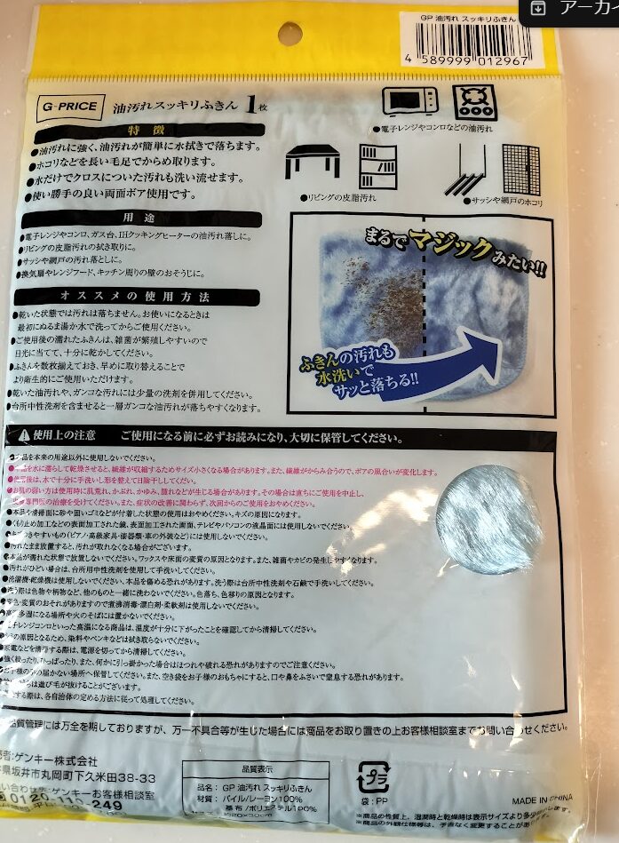 油汚れスッキリ 水だけできれいにするふきん 198円