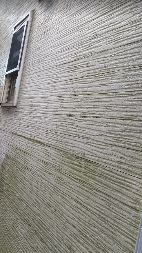 近所を見ても、紺など濃い外壁の家は、苔がついていてもほとんど分かりません。