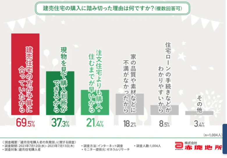 1位は『建売住宅の方が予算に合っていたから』2位は、『現物を見て購入判断ができるから』という結果。