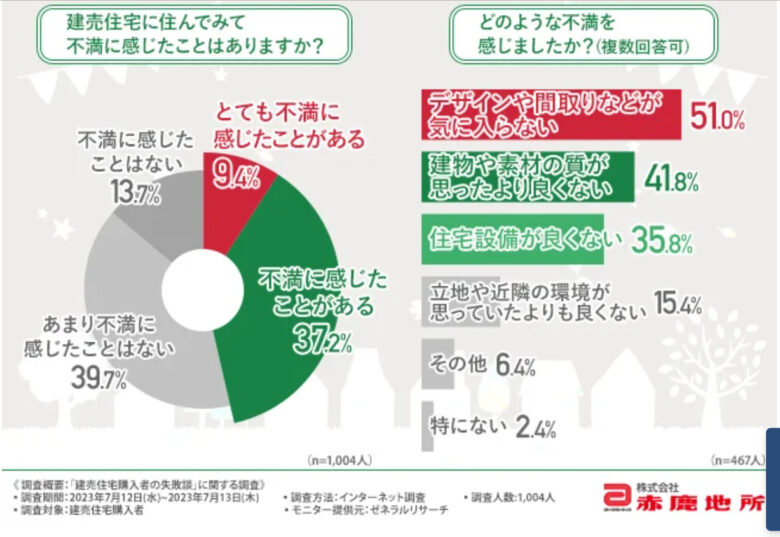 【世間のアンケート】建売住宅に住んでみて不満を感じたこと