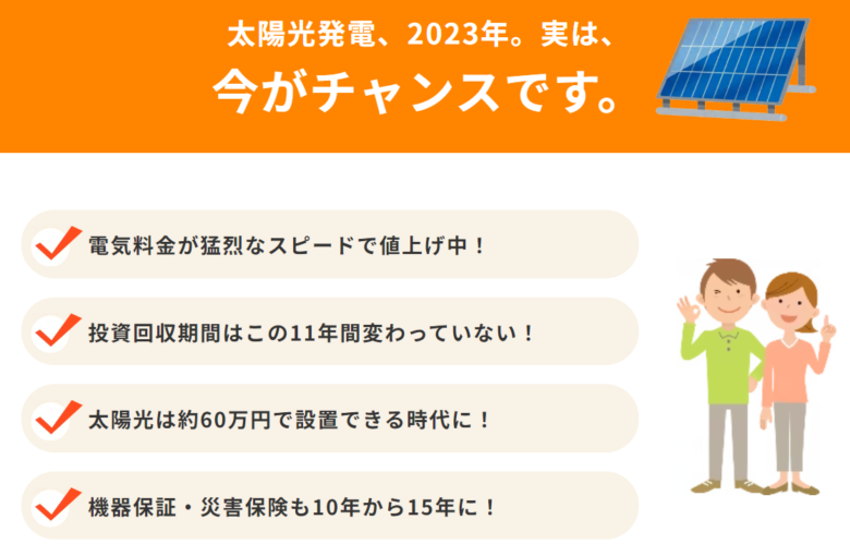 現在は確かに売電価格は下がっていますが、その分、設置価格も下がっています。