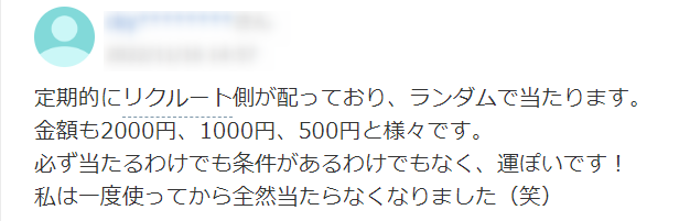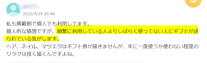 また、むしろあまり利用しない人、前回利用してからしばらく利用が無い人に当たるとの声もありましたが真意は不明です。