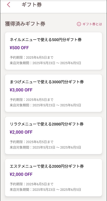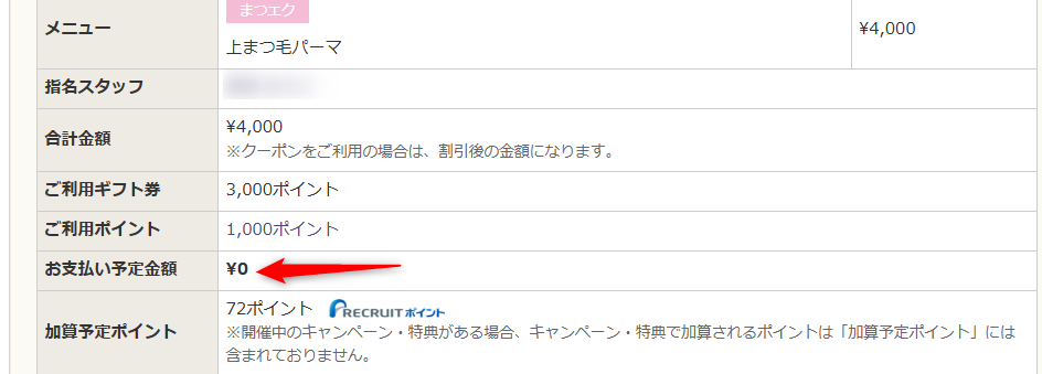 まつエクの場合、【まつげメニューで使える〇〇円分ギフト券】という文言が出るはずです。
