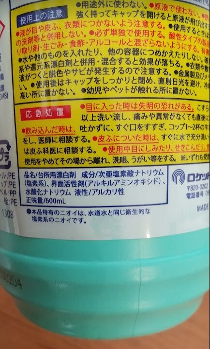 名前は違っても、よくある塩素系の安い漂白剤です。