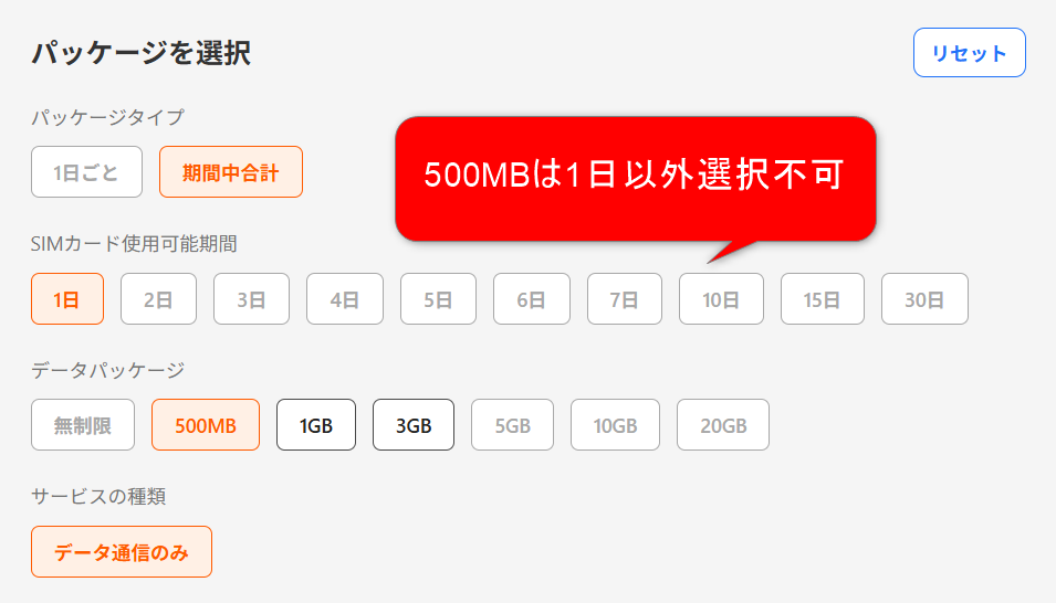 Klookは1日単位の金額が、500MBは88円、1GBプランが76円と驚異的に安いですが、2泊や4泊だとプランがありません👇