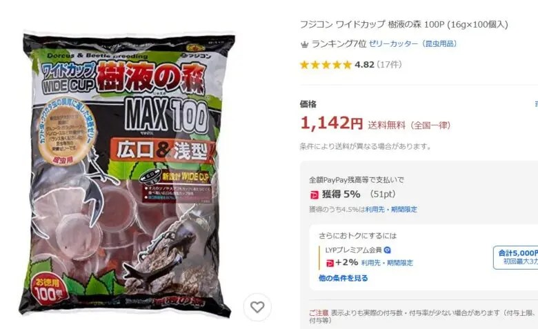 例として、Amazonで非常によく売れている人気商品のフジコン 樹液の森100個入りの価格を見てみます。