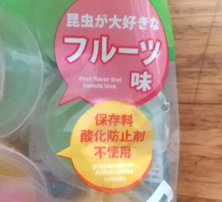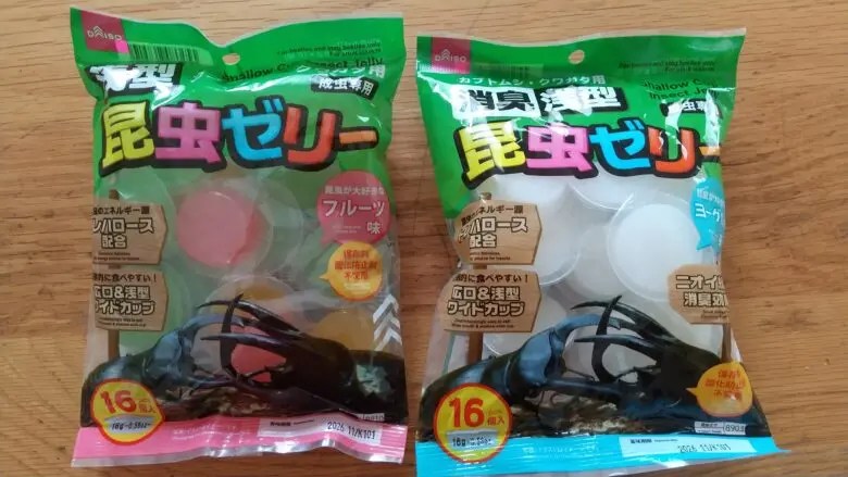 - 昆虫ゼリー…ヨーグルト味、フルーツ味