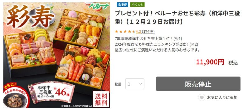 ただし、12月28日時点、ベルーナグルメ公式サイトではすべて売り切れでした。